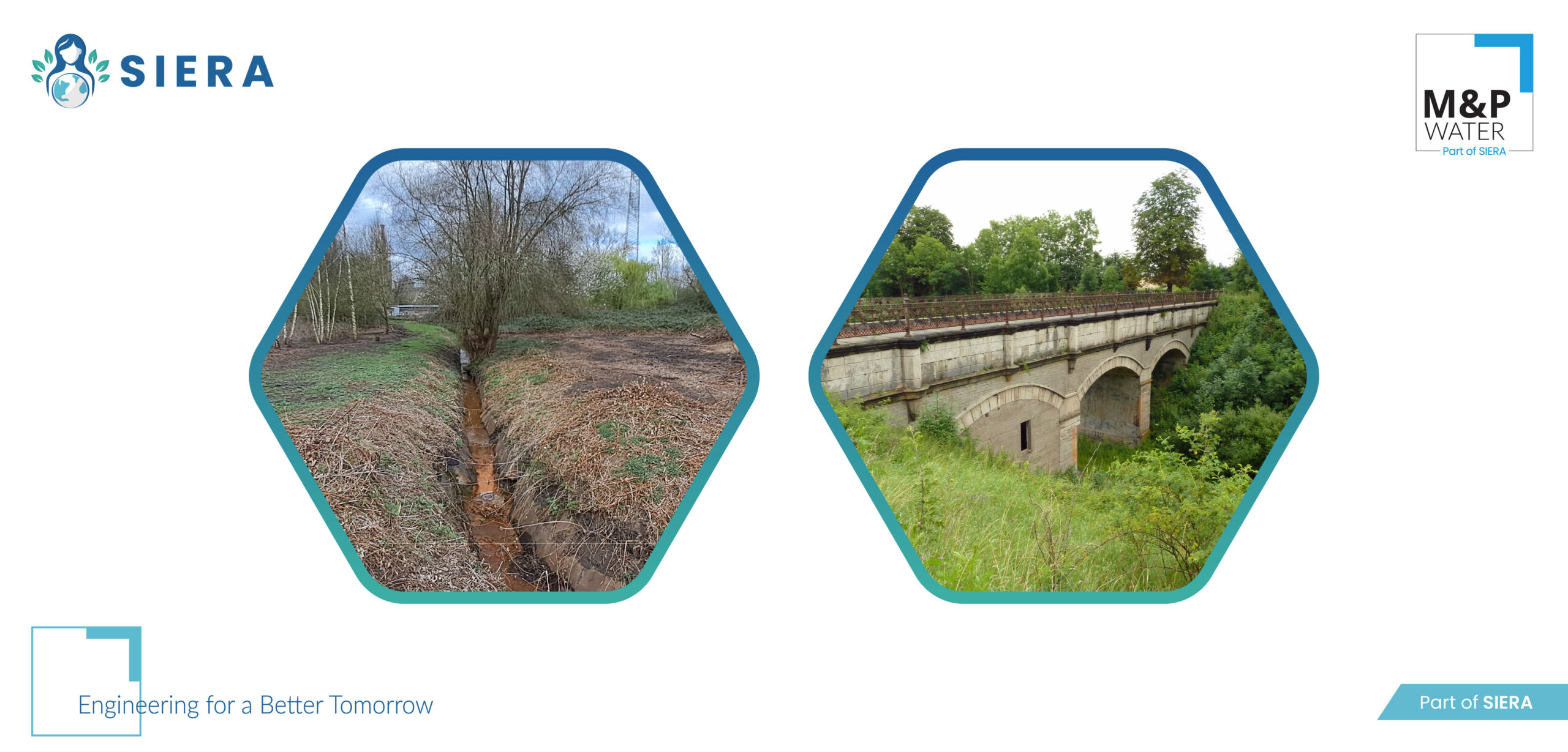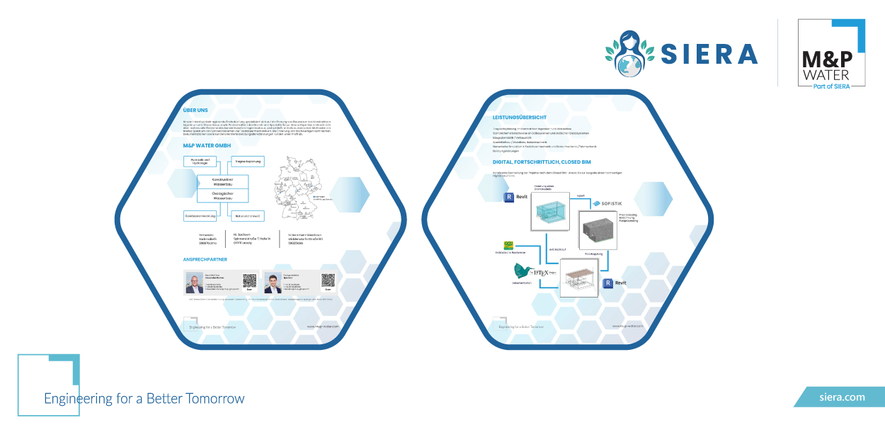 Als Teil der SIERA bündelt die M&P Water Dienstleistungen der genannten Geschäftsfelder im Tätigkeitsfeld “Wasser” und ergänzt das Portfolio der gesamten Gruppe in allen Bereichen des Wasserbaus, insbesondere Hochwasserschutz, Talsperren, Hochwasserrückhaltebecken, Durchgängigkeit, der hydraulischen Modellierung, der Sanierung und Ertüchtigung v on wasserbaulichen Bauwerken und Anlagen, uvm.